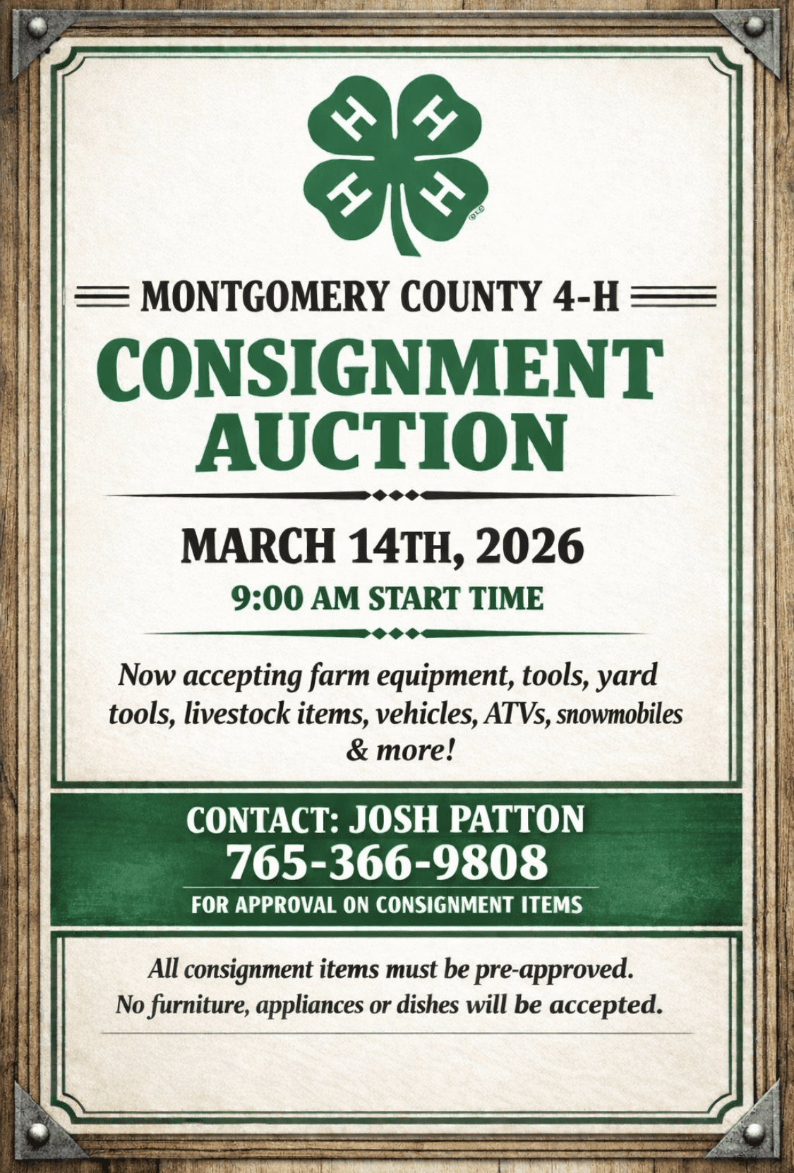 Montgomery County 4-H seeks items for consignment auction